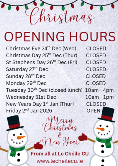 Le Chéile Credit Union Limited is regulated by the Central Bank of Ireland. Reg. No.:269CU
